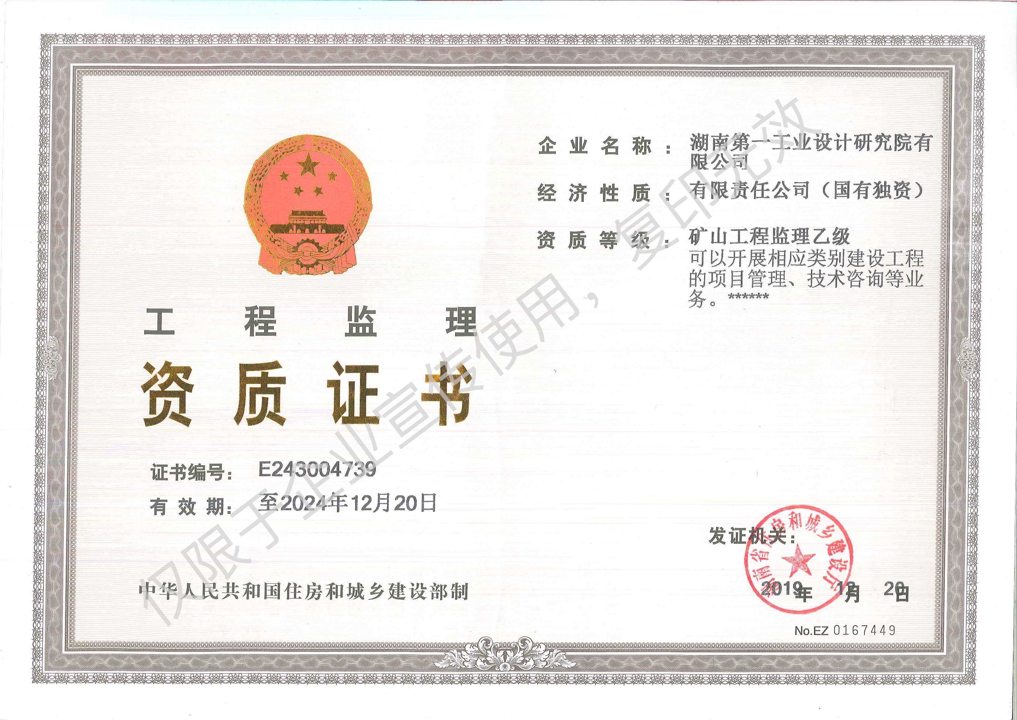 工程監(jiān)理企業資質證書