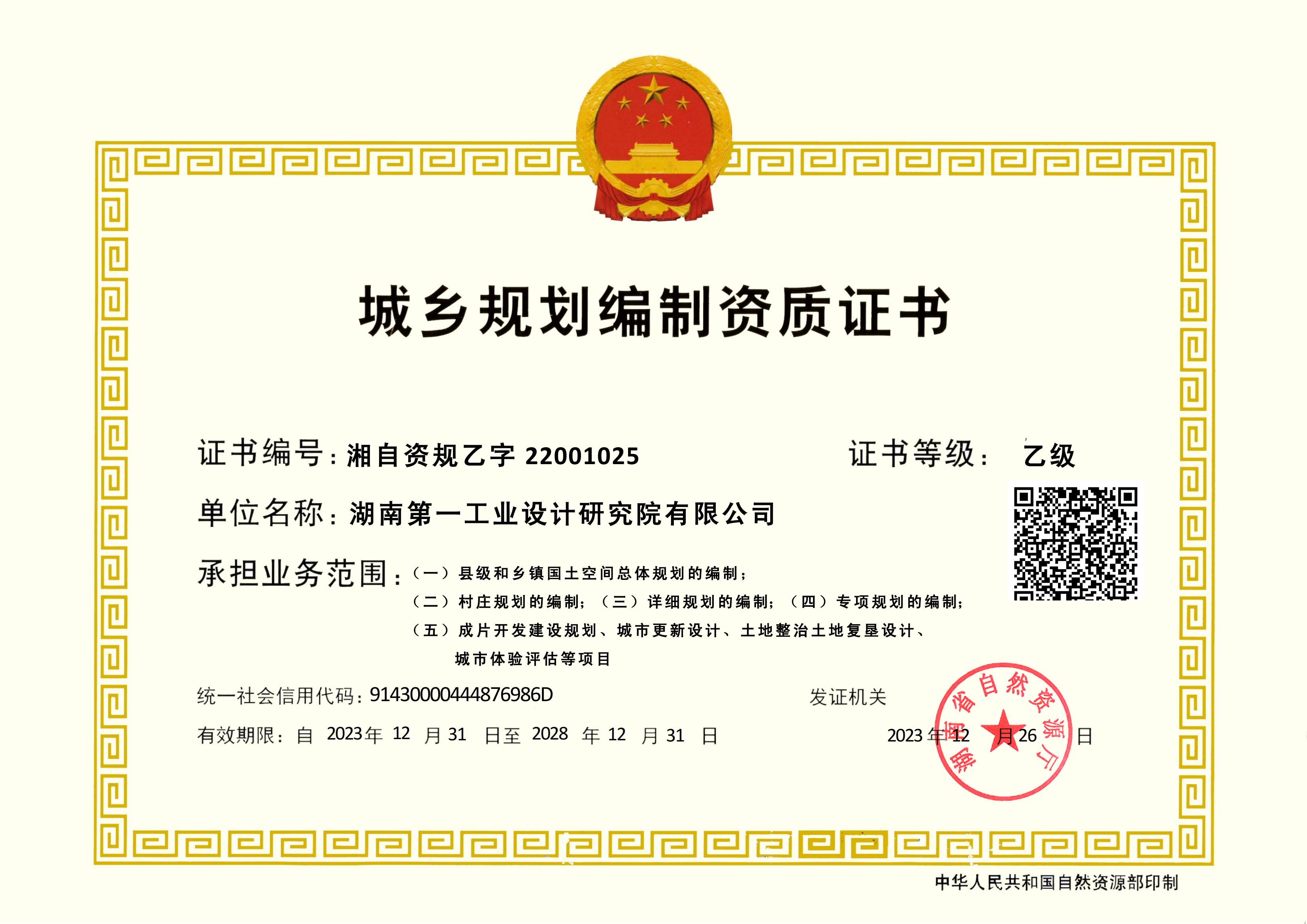 城鄉規(guī)劃編制資質證書