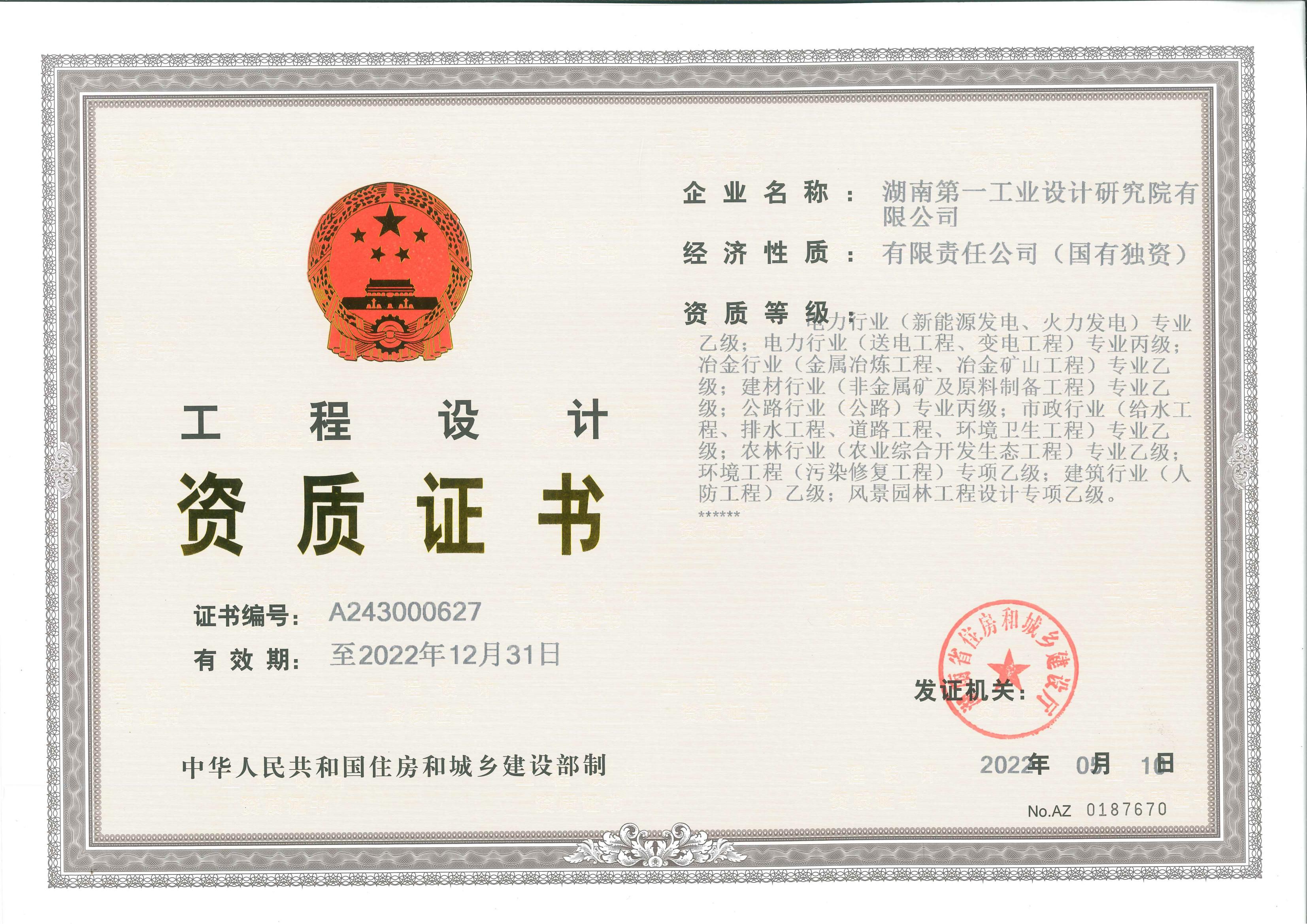 工程設計資質證書